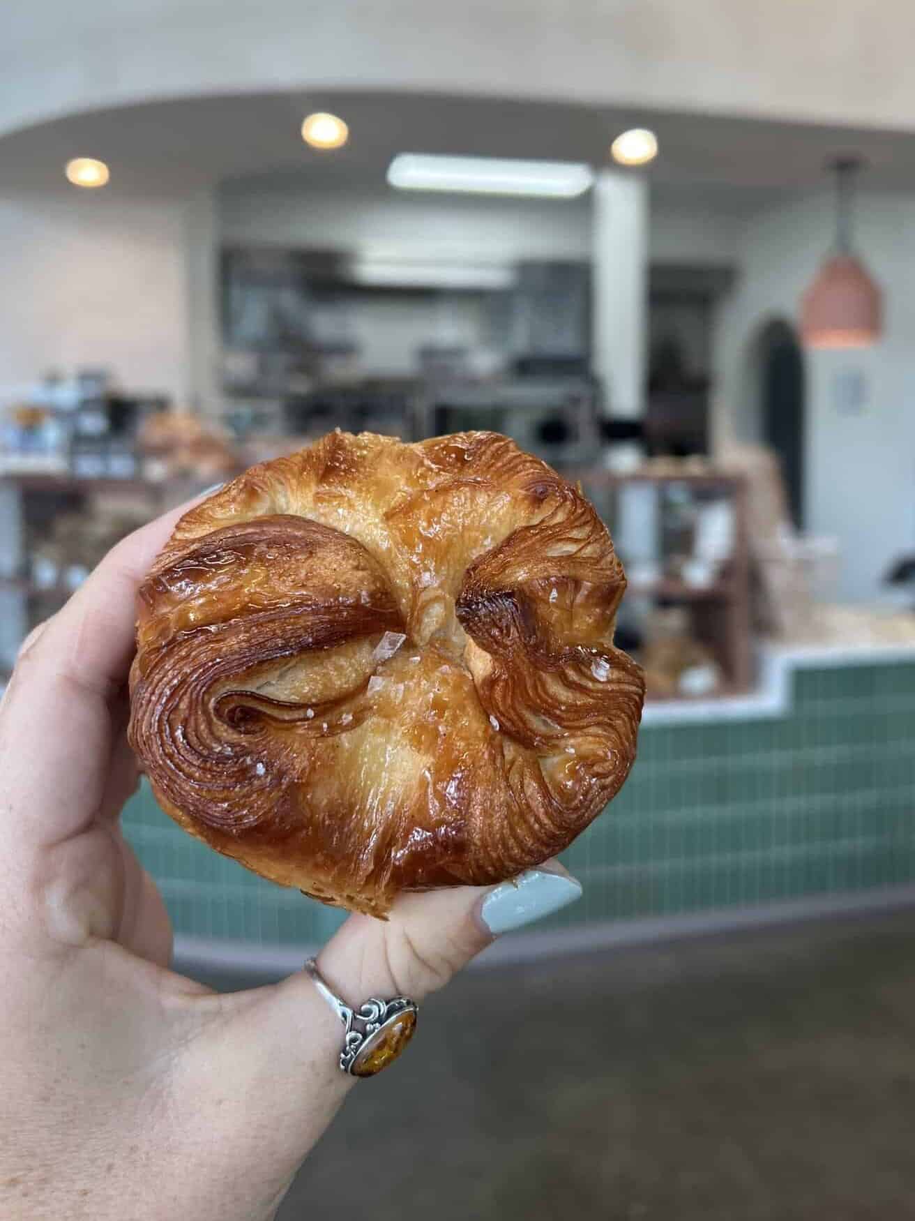 My go-to here is the kouign-amann. And if you’re saying “kou…what?”, let me tell you. It’s a flakey and crunchy pastry filled with buttery, caramel-ly goodness. My sister-in-law turned me on to them and now I’m hooked. M’s Bakery is one of the only places in town that I’ve found them.