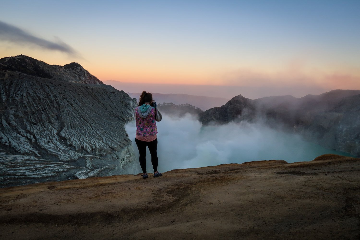 At the top you’ll see the sunrise over a crater with the largest acid lake in the world, Kawah Ijen, which is a brilliant turquoise color.