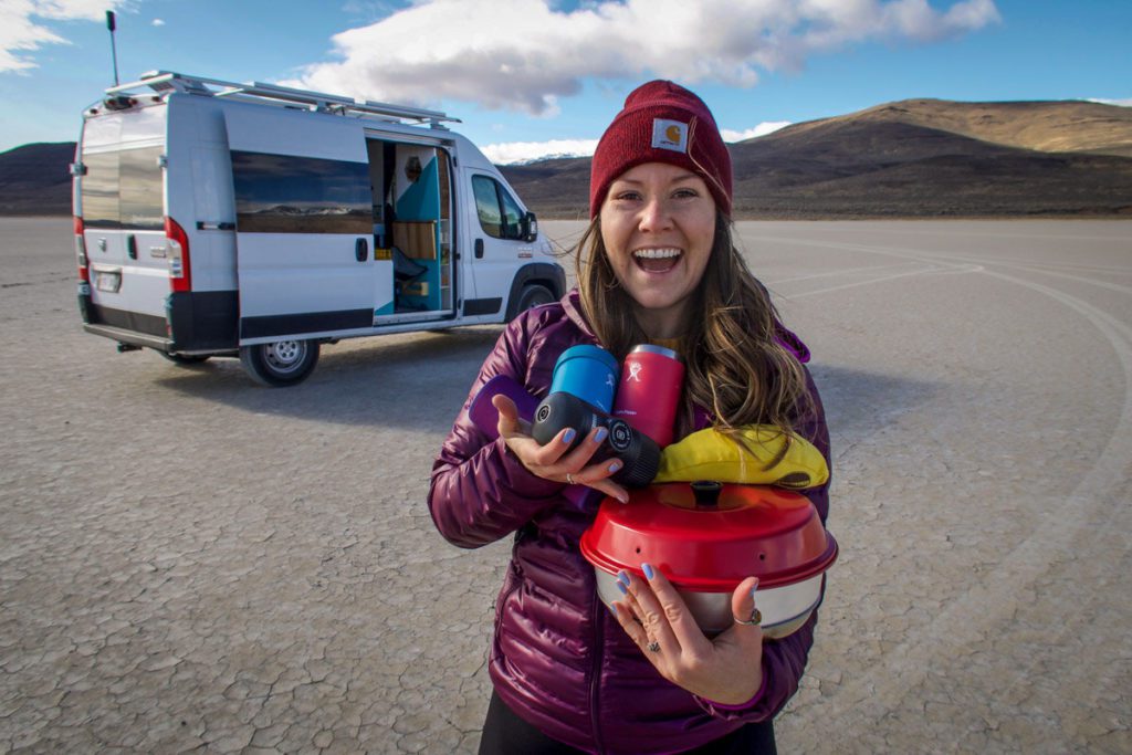 - Spices and oil: When going on a campervan trip, we always like to bring our own spices so we don’t have to stock up. You can bring mini containers filled with your faves (we bring high-quality salt, pepper, cayenne, and any others that strike our fancy). We like this leak-proof container for storing coconut oil and this one for storing olive oil.